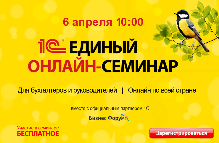 Приглашаем на весенний Единый онлайн-семинар, который состоится 6 апреля. Организатор – фирма «1С» совместно с партнерами.