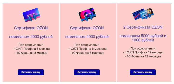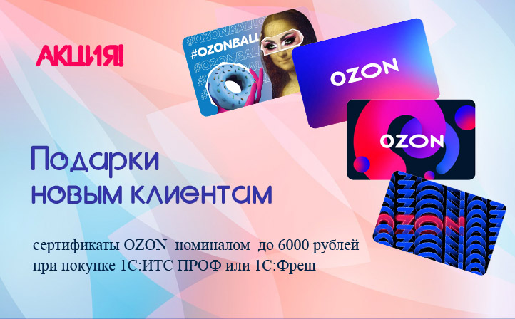 Компания "Бизнес Форум" дарит новым клиентам сертификаты OZON номиналом от 2000 рублей до 6000 рублей, при покупке 1С:КП ПРОФ или 1С:Фрeш.