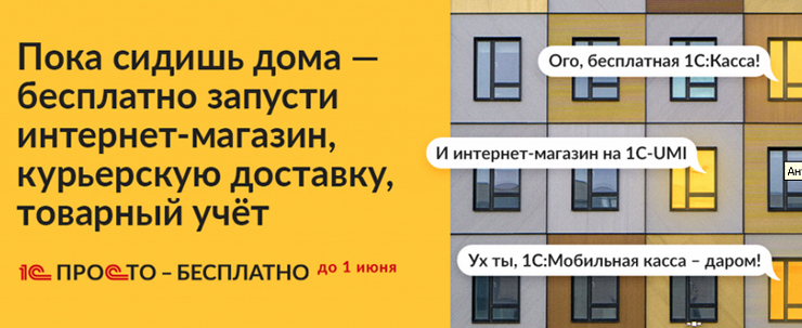 1. Бесплатно: Интернет-сервис «1С:Касса» — простое решение для организации товарного учёта в магазине или небольшой торговой сети, с возможностью подключения необходимого числа рабочих мест кассира на любых совместимых онлайн-кассах. Также «1С:Касса» позволяет удалённо печатать чеки от курьеров и из интернет-магазинов, что позволяет быстро запустить онлайн-торговлю и доставку без дополнительных затрат. Антикризисный бесплатный тариф активируется непосредственно на странице настроек программы путём ввода промокода PROSTOKASSA010620 и предоставляет пользователю до 01 июня 2020 года расширенный функционал интернет-сервиса с возможностью бесплатного использования до четырёх касс.2. Бесплатно: Мобильное приложение для курьеров «1С:Мобильная касса» — рабочее место кассира или курьера, которое устанавливается на Аndroid смартфоны или планшеты и позволяет реализовывать товары с печатью чека на подключенном мобильном кассовом аппарате или удалённо, прямо на кассе в вашем магазине. Также поддерживается импорт заказов из «1С:Касса» и других приложений «1С». В рамках антикризисной акции приложение из Google Play работает в расширенном режиме бесплатно до 01 июня 2020 года.