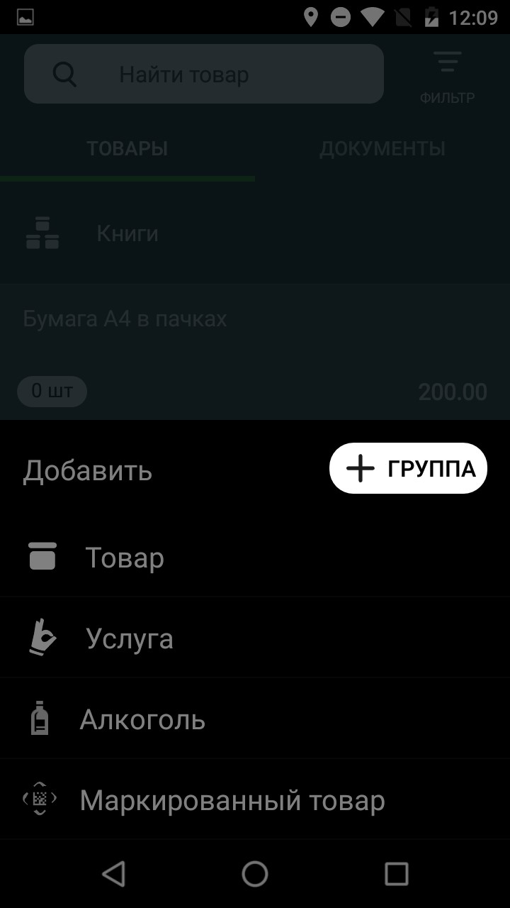 Чтобы создать группу товаров или услуг:Зайдите на смарт-терминале в раздел Товары → вкладка Товары.