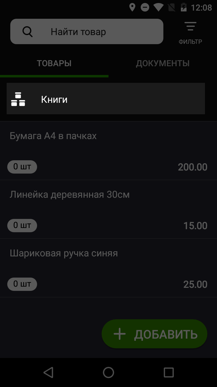 - Зайдите на смарт-терминале в раздел Товары → вкладка Товары.