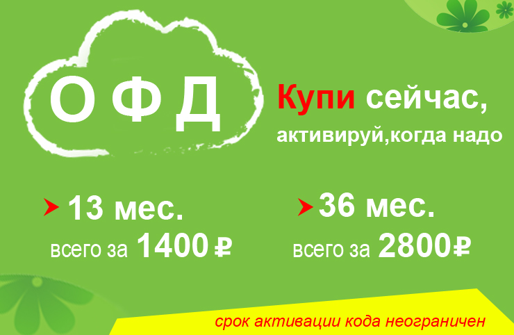 - пин-код ОФД на 13 мес. всего за 1400 руб.