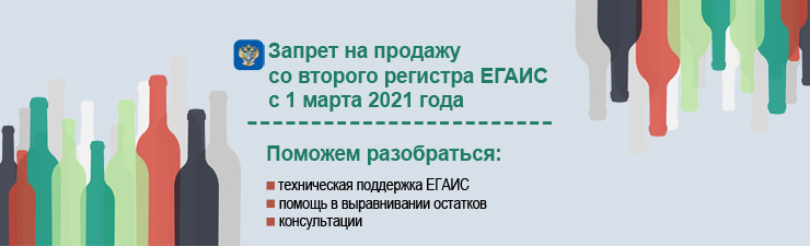 - С 1 марта в рамках отмены второго регистра для маркированного алкоголя — торгового зала по ЕГАИС — будет запрещён перевод на него соответствующей продукции, если таковая уже имеется на балансе. Списание такой продукции чеками также будет запрещено — теперь для этого нужно будет обращаться в ФСРАР.