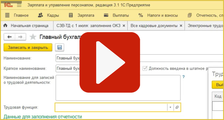 Мы подготовили видео об изменениях в отчете СЗВ-ТД, ОКЗ и трудовой функции с 01.07.2021.